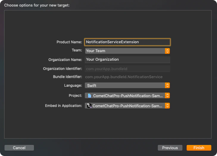 This service grabs the data from the push notification payload, the user can modify its content and display the customized data on to the push notification. In our case, we are modifying the data of the push notification and incrementing the badge count when a new push notification is received. Let’s begin to implement an incremented badge count for your app.Step 1: Add UNNotificationServiceExtension inside the app.