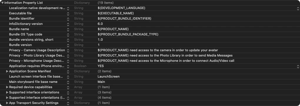 Prepare your app for this requirement by providing justification strings. The justification string is a localizable message that you add to your app’sInfo.plist file to tell the user why your app needs access to the user’s photo library, Camera, Microphone. Then, App prompts the user to grant permission for access, the alert displays the justification string you provided, in the language of the locale selected on the user’s device. You can do this as follows: