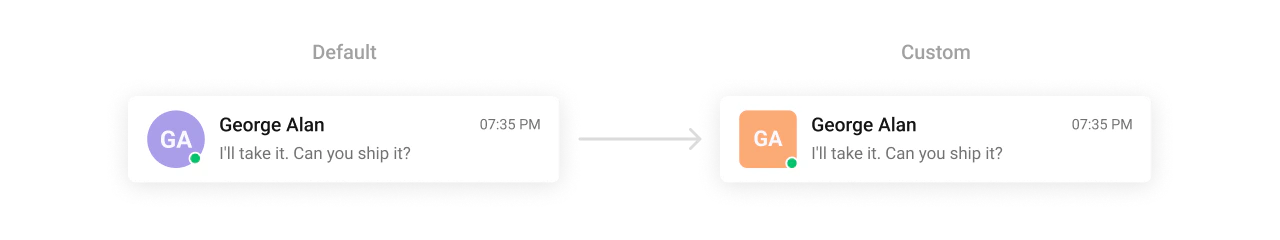CometChatAvatar - Default behavior: UI Kit default avatar styling.