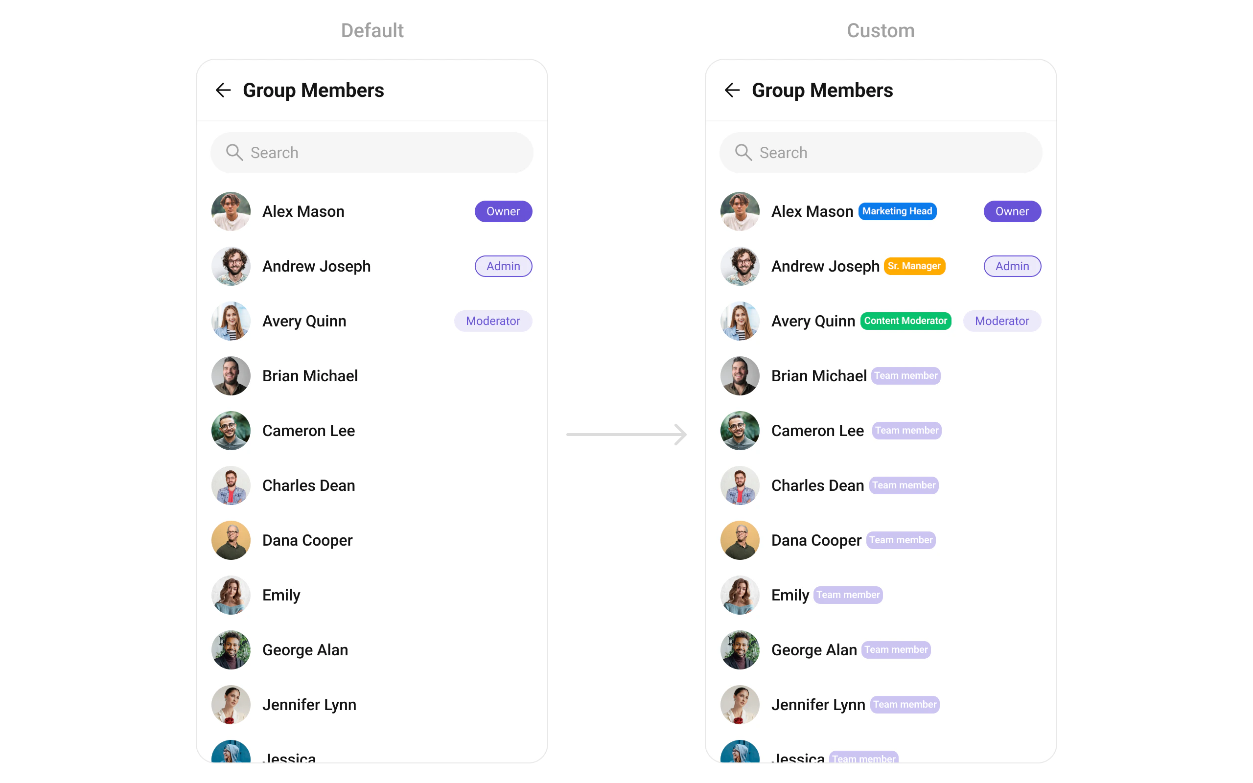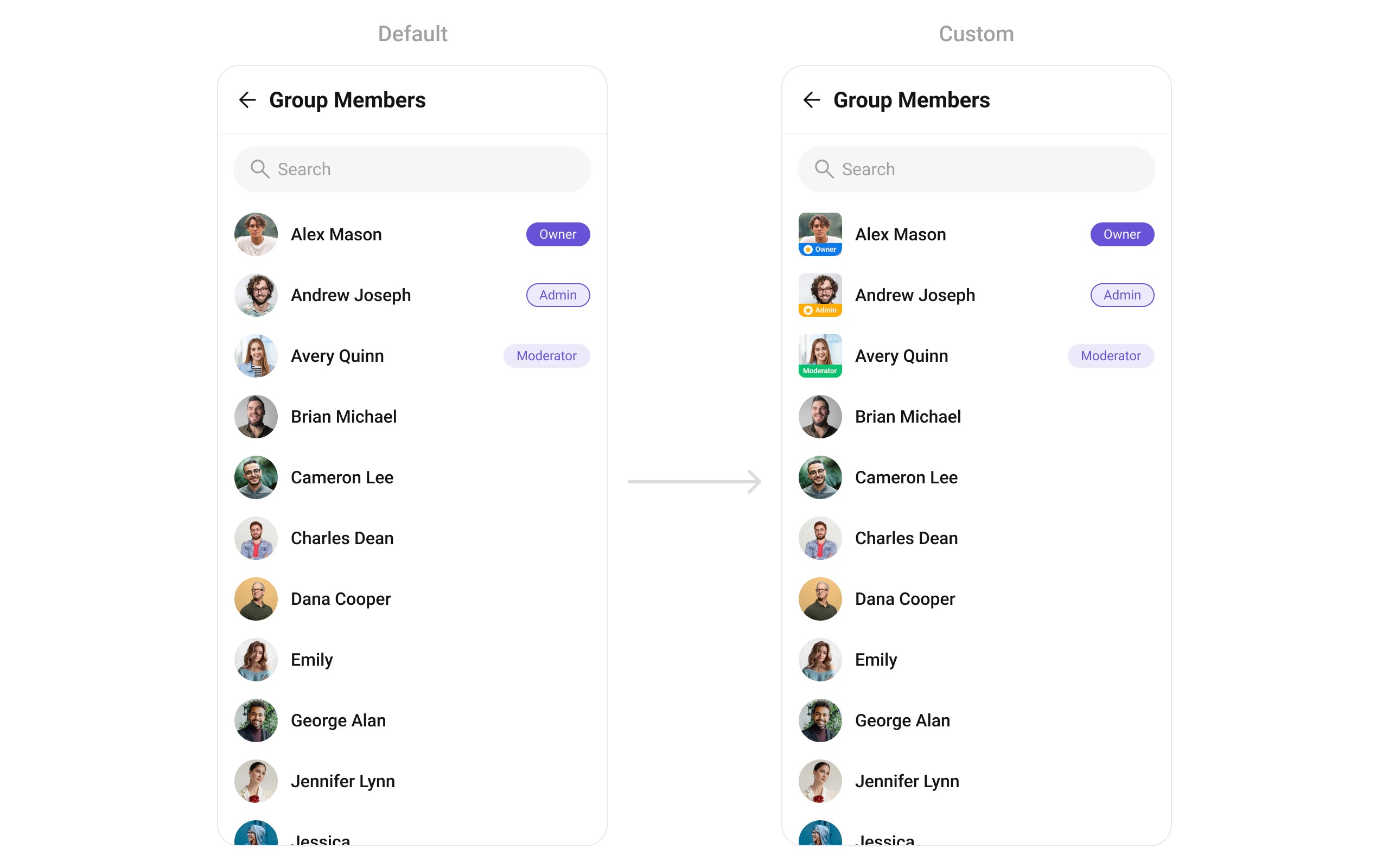 | Subtitle view | setSubtitleView(GroupMembersViewHolderListeners) | Subtitle text below name |