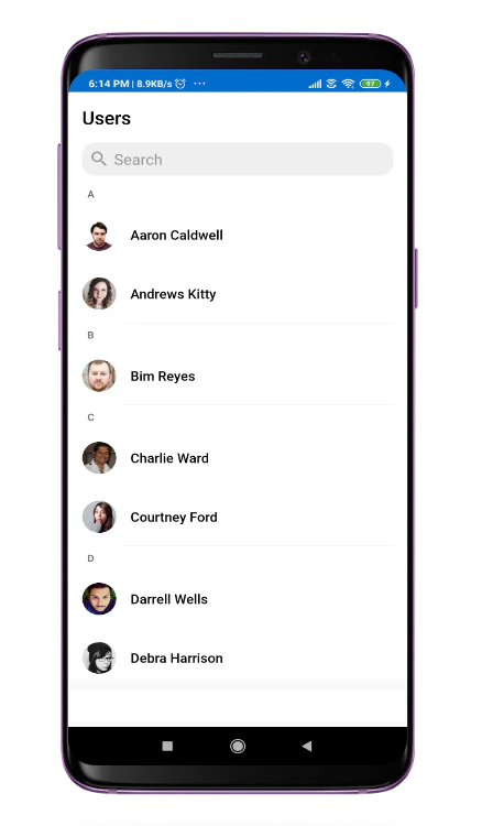 In yourlayout.xml add the following snippet to use the CometChatUserList. Adding the following code snippet will give you a fully working list of users.