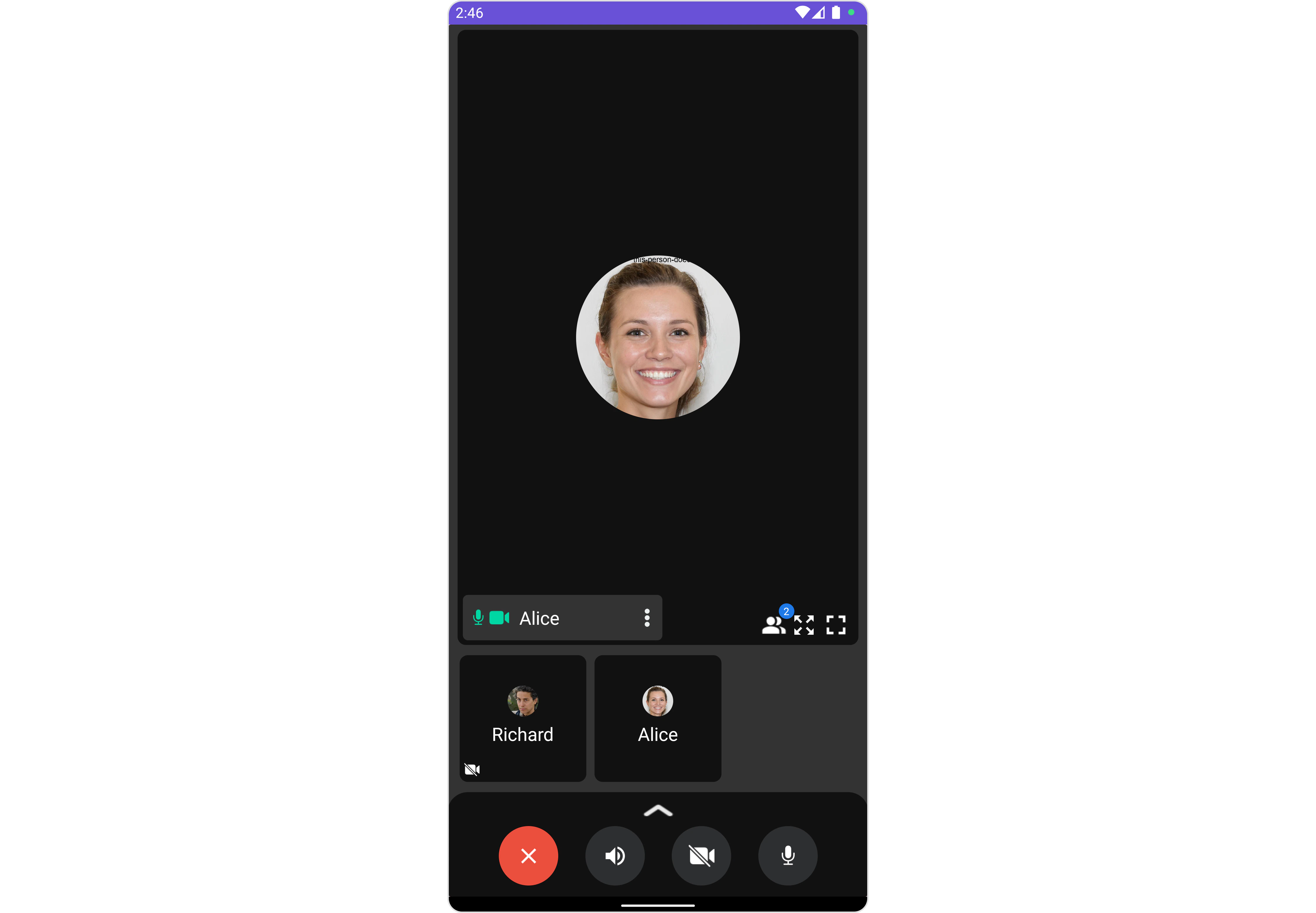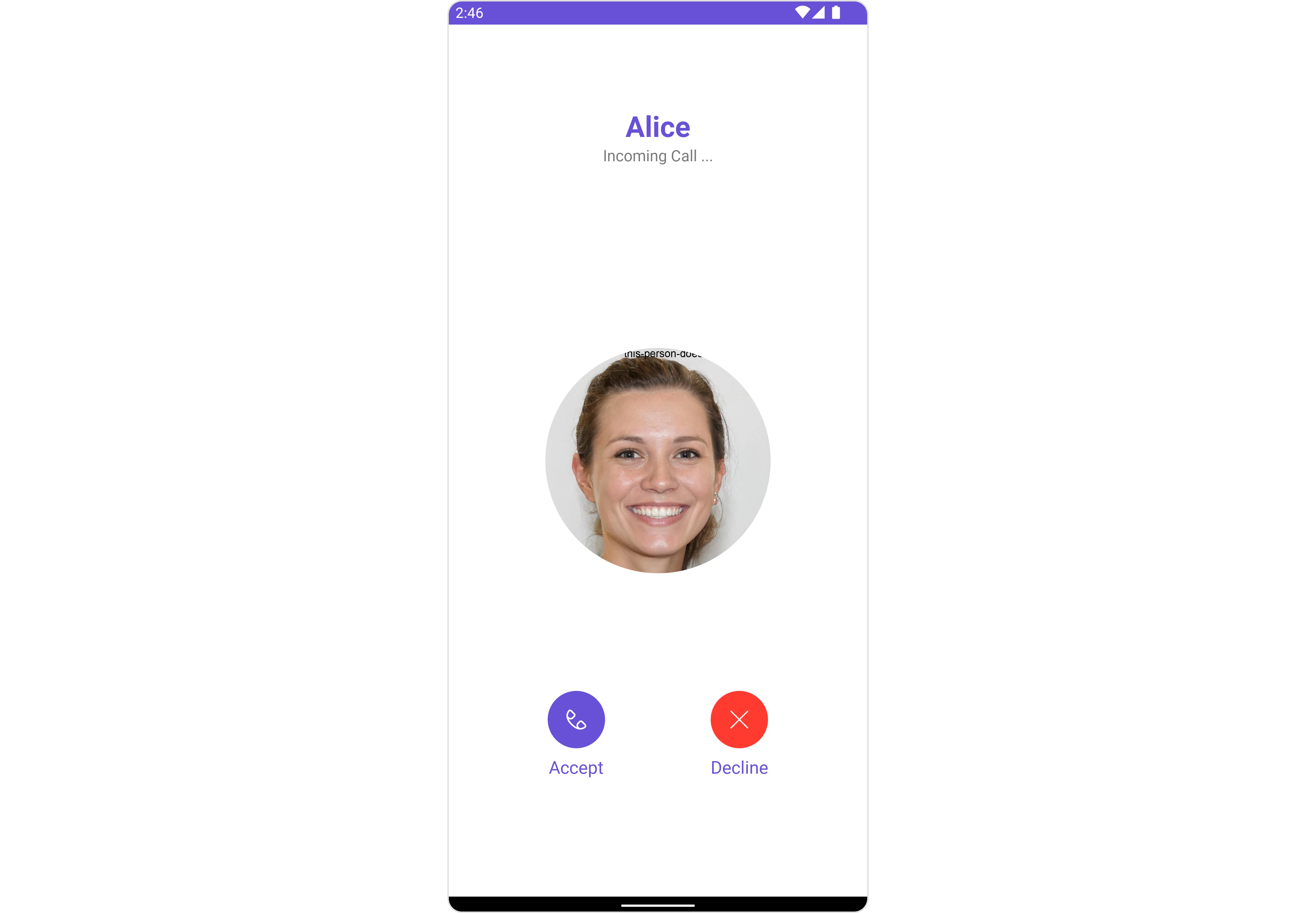 The OngoingCall component is the user interface that displays during an ongoing call. For an audio call, this screen displays the participant’s name, call duration, and buttons to mute the audio, enable or disable video, switch the camera, and end the call. For a video call, the Call Screen might additionally display the video footage from both the user’s camera and the recipient’s camera.