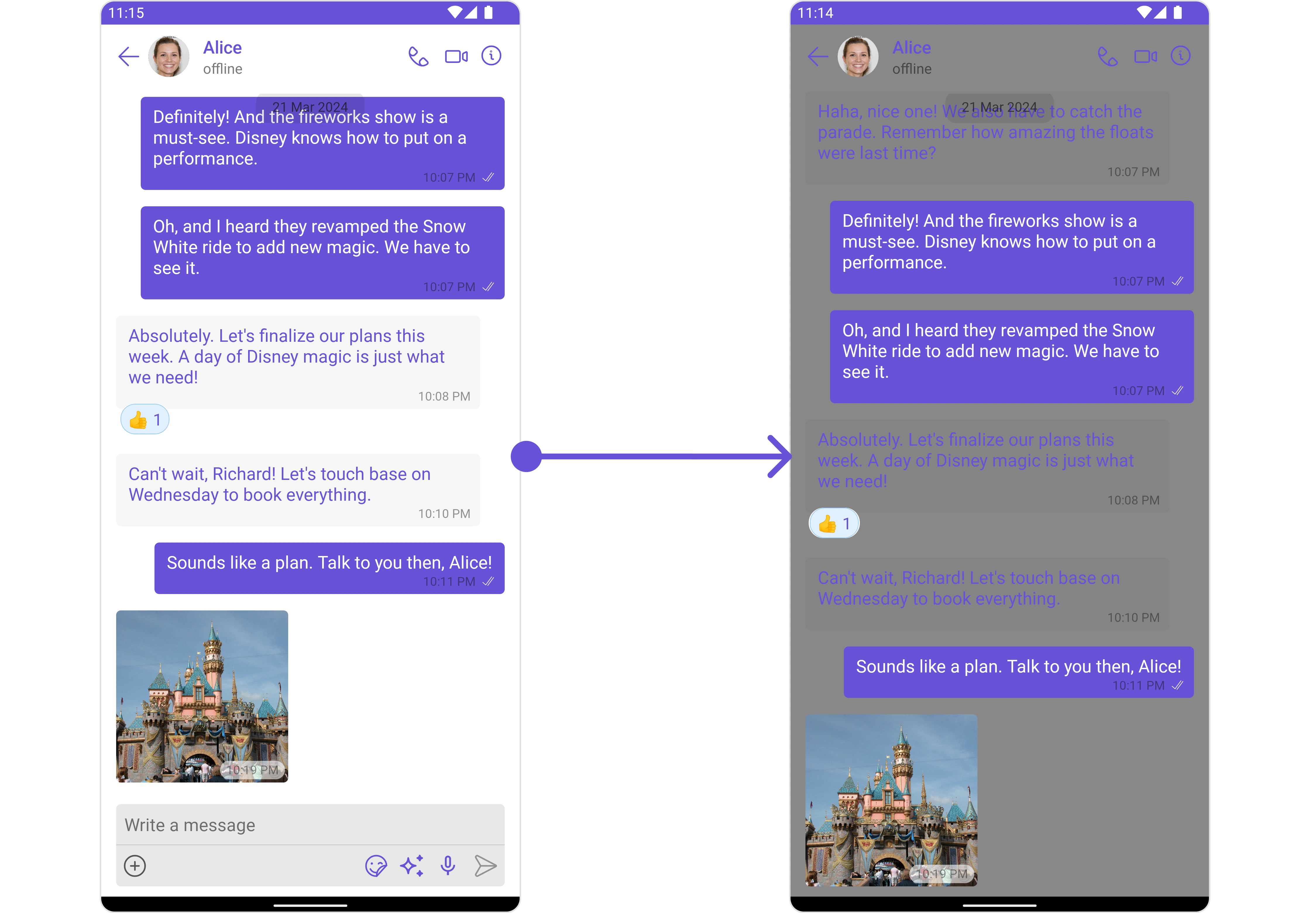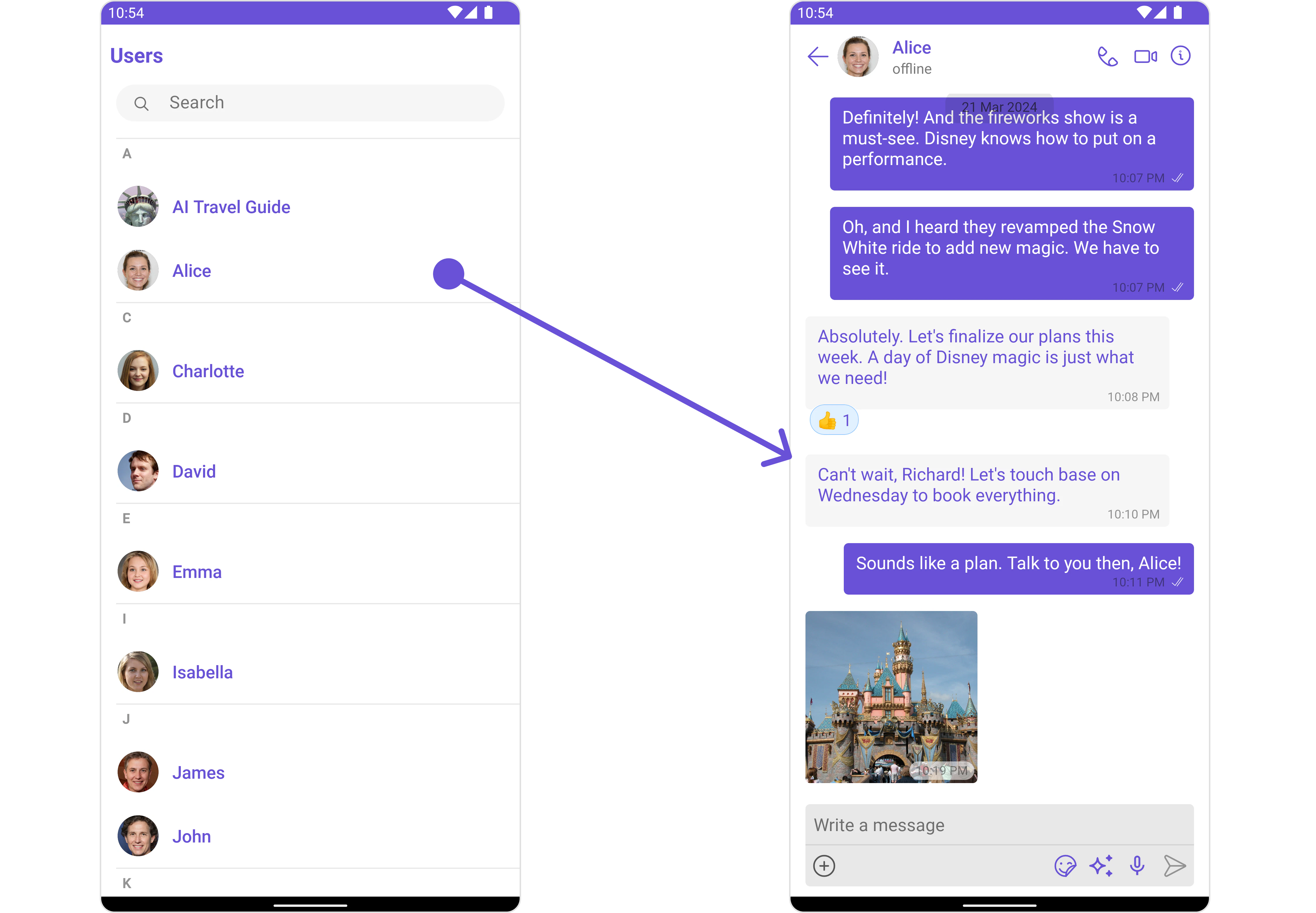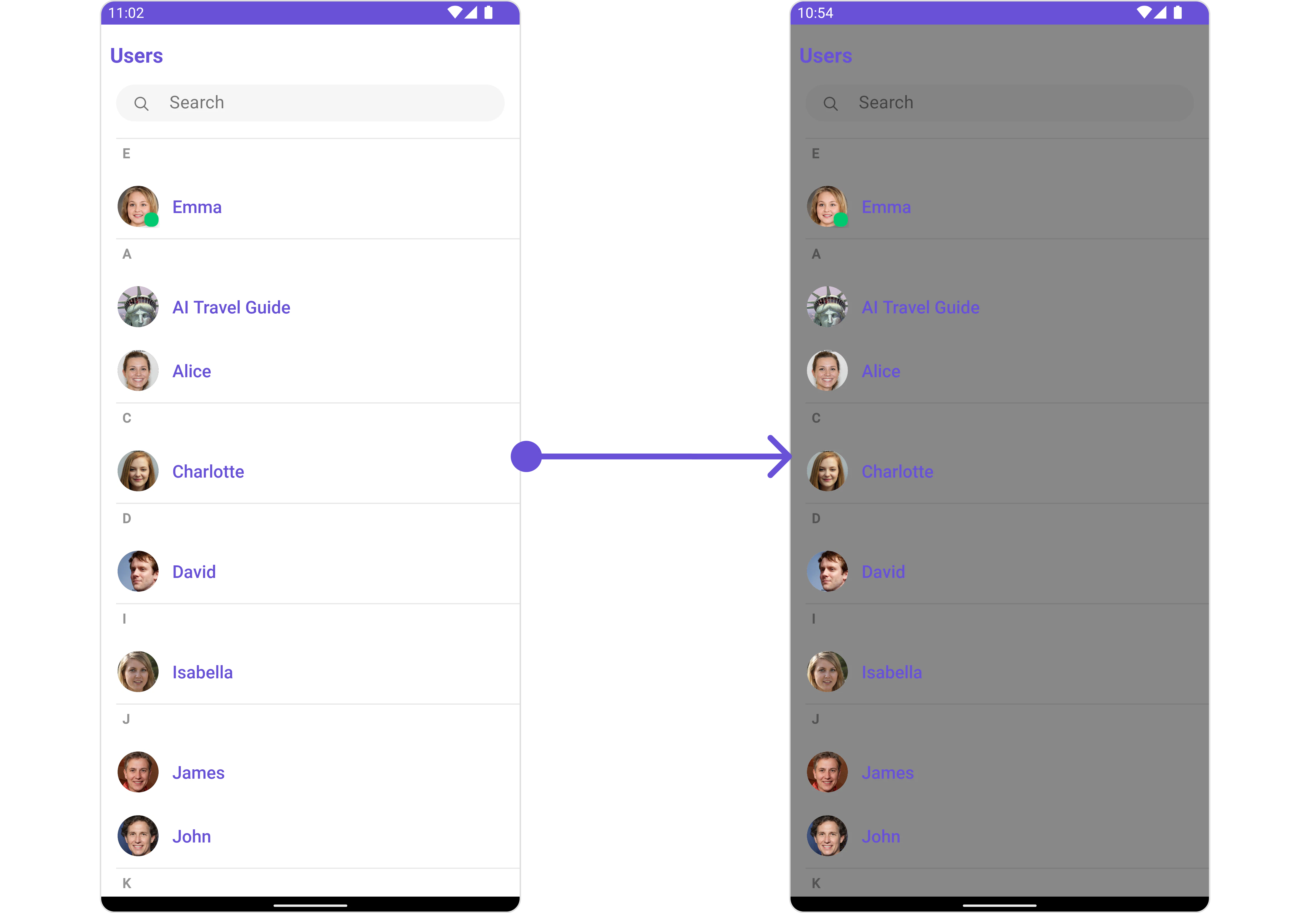 To fit your app’s design requirements, you have the ability to customize the appearance of the UsersWithMessages component. We provide exposed methods that allow you to modify the experience and behavior according to your specific needs.Style