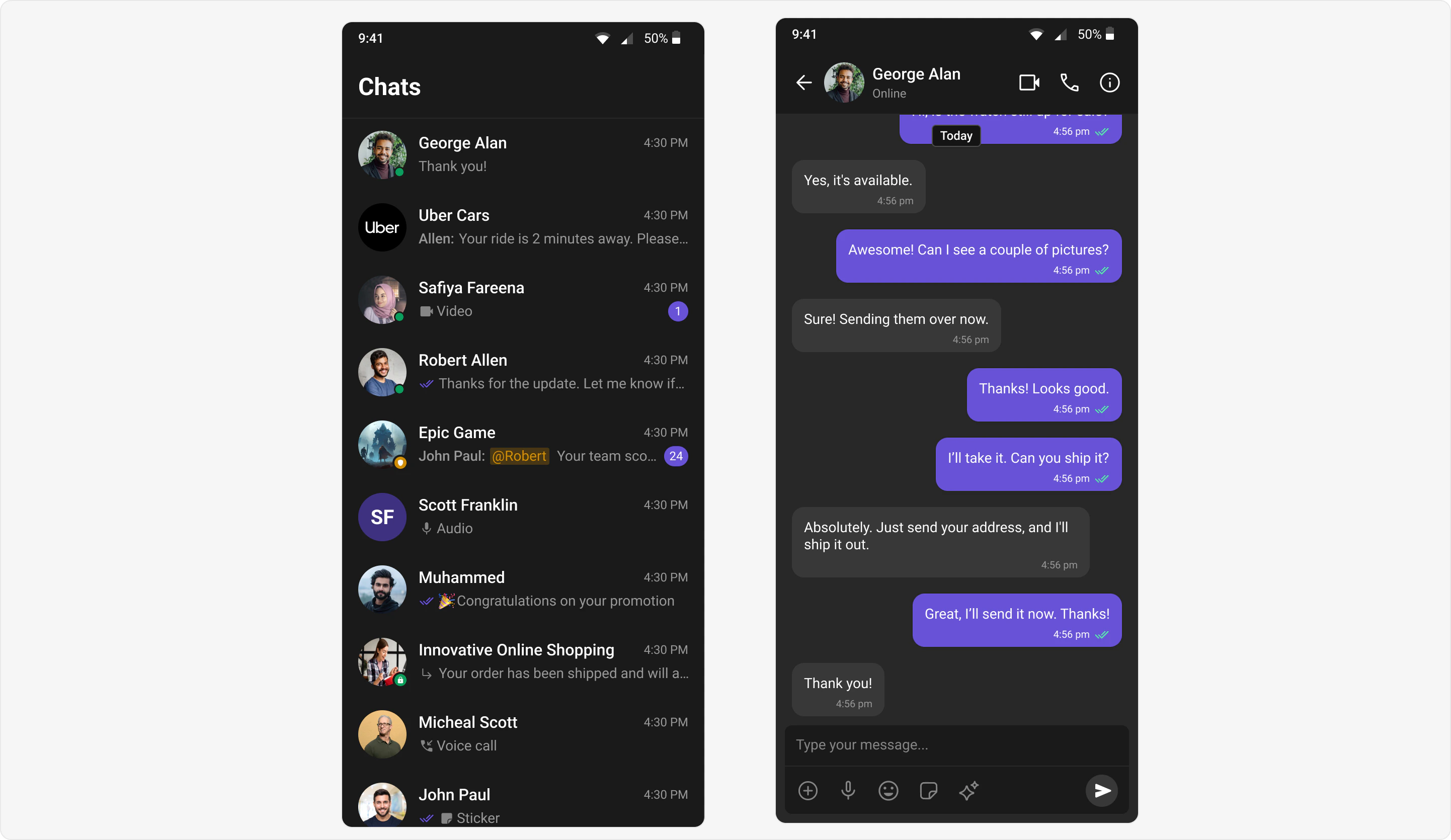 | Dark mode | Use separate CometChatColorPalette for dark theme |