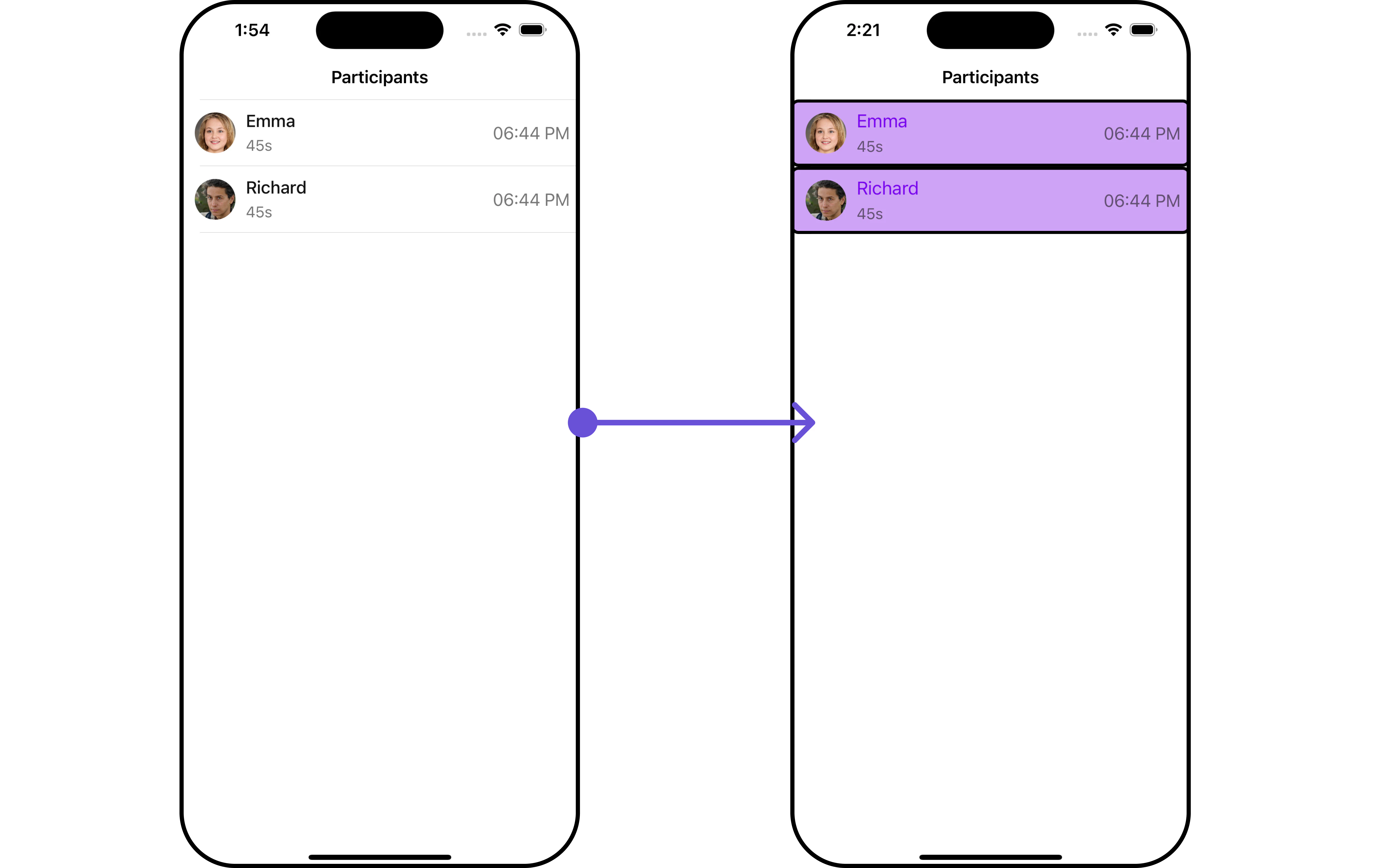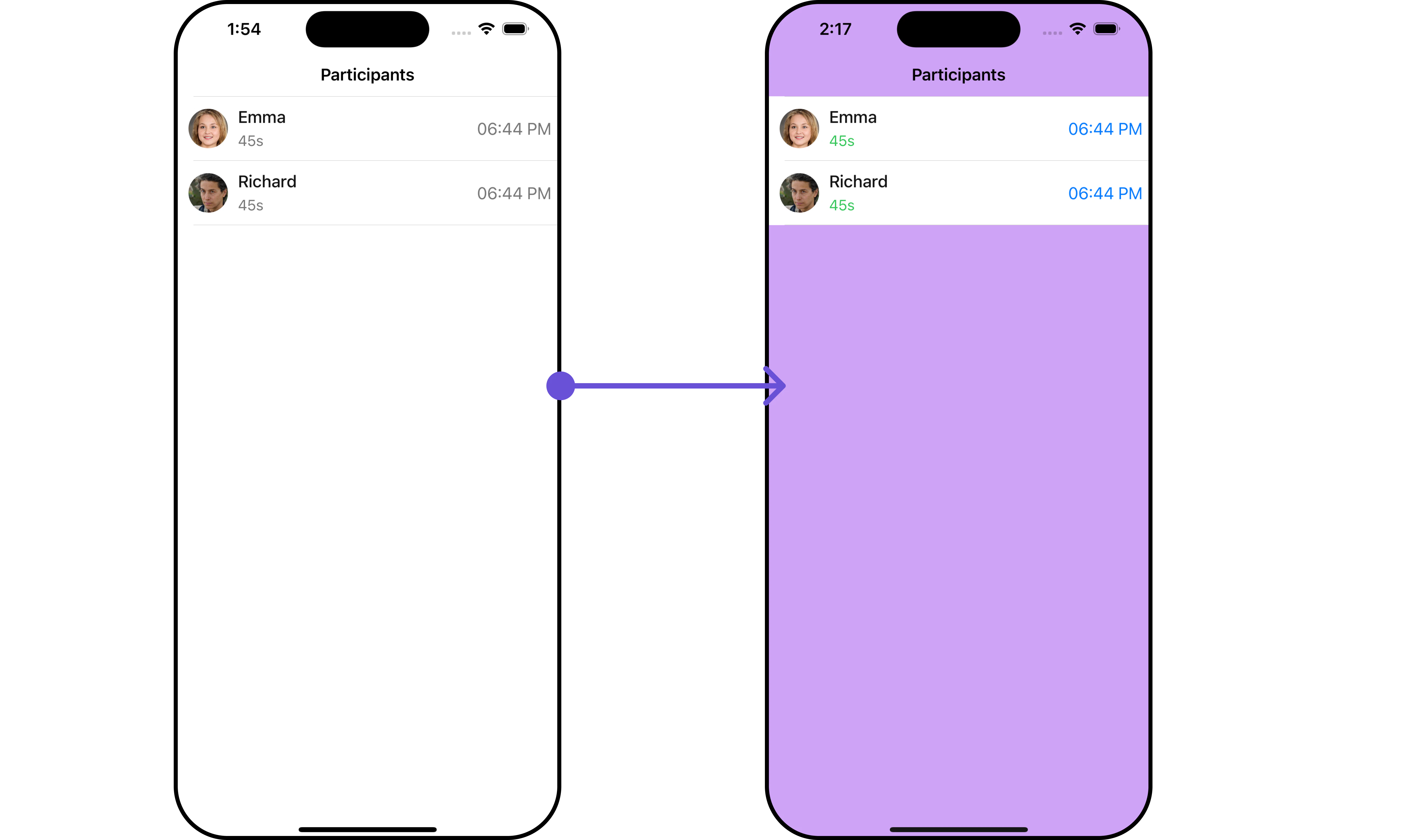 CometChatCallLogParticipants. If a navigation controller is already in use, utilize the pushViewController function instead of directly presenting the view controller.Functionality