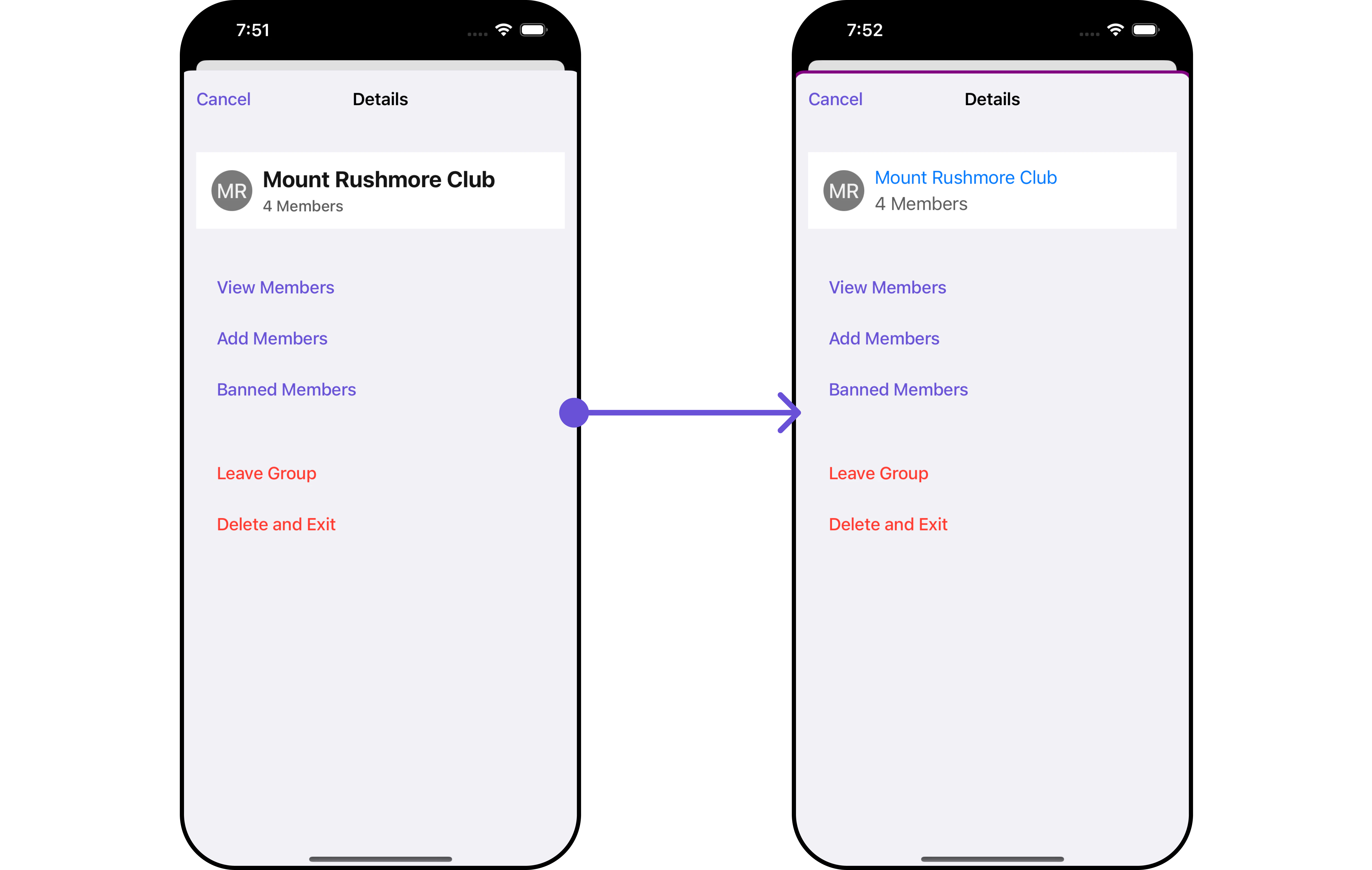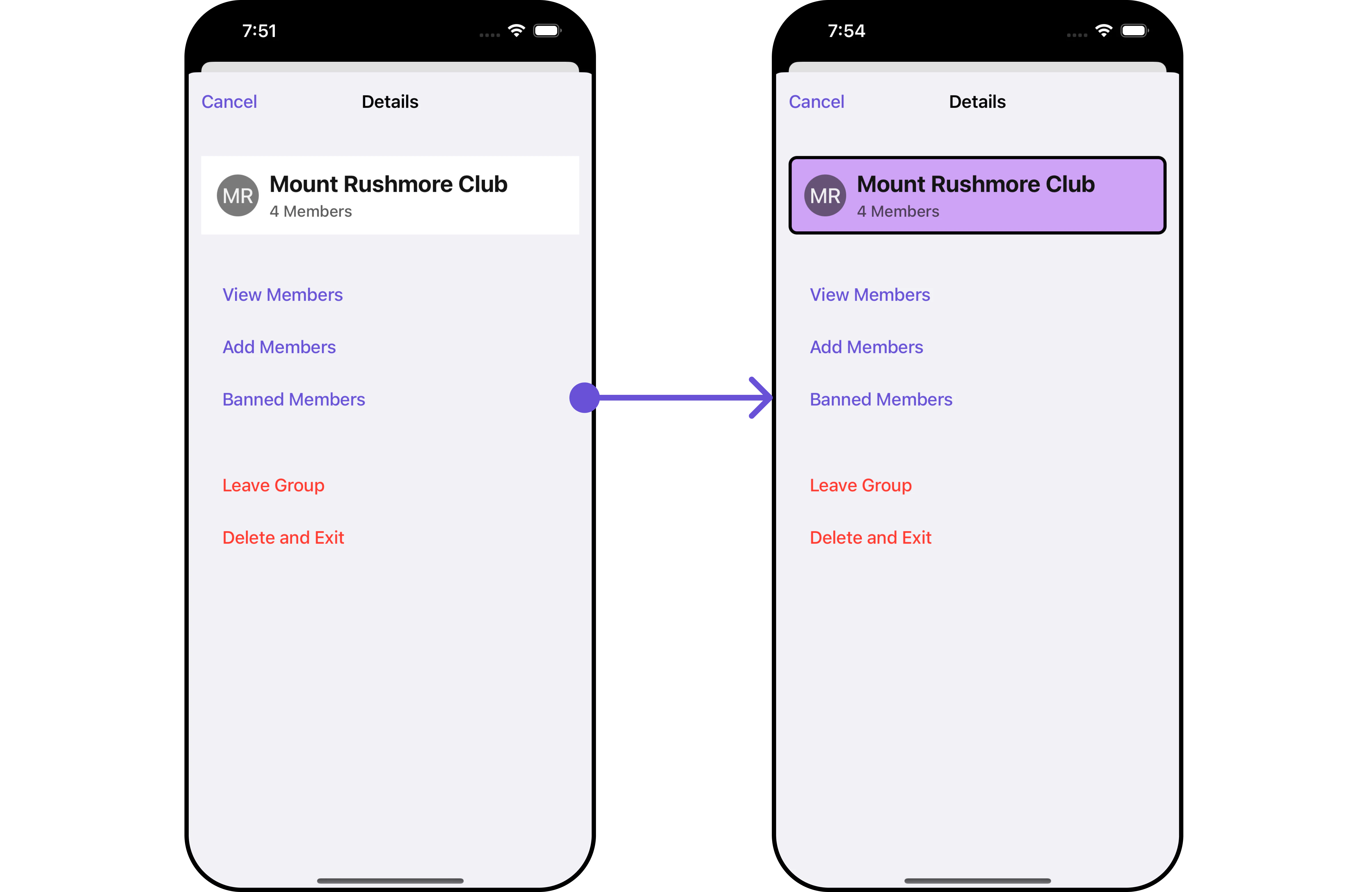 Let’s say you want to change the style of the Group Member subcomponent and, in addition, you only want to hide separator and show back button.