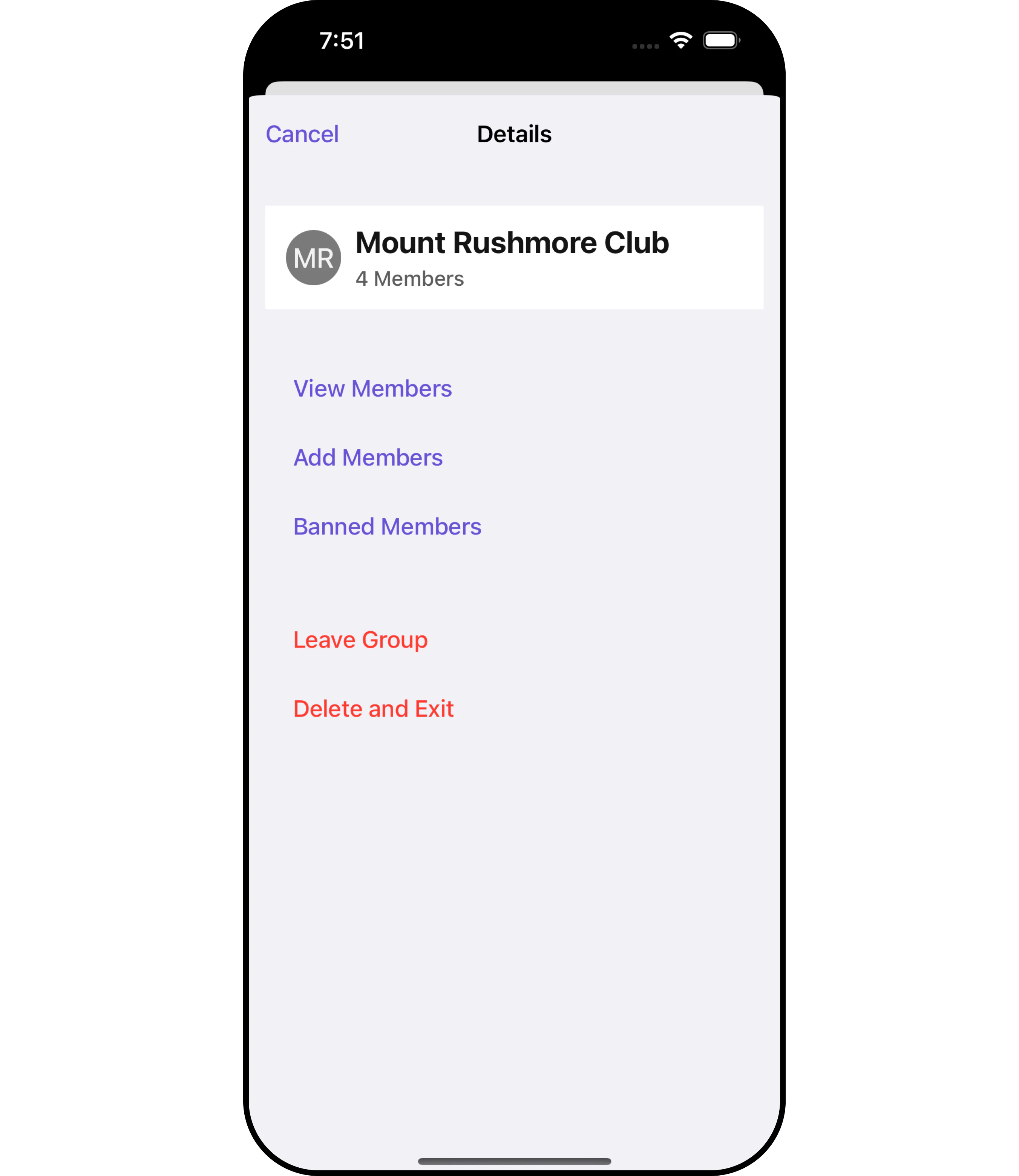 - Group Actions: This offers actions related to the group, such as leaving the group, or deleting the group.
