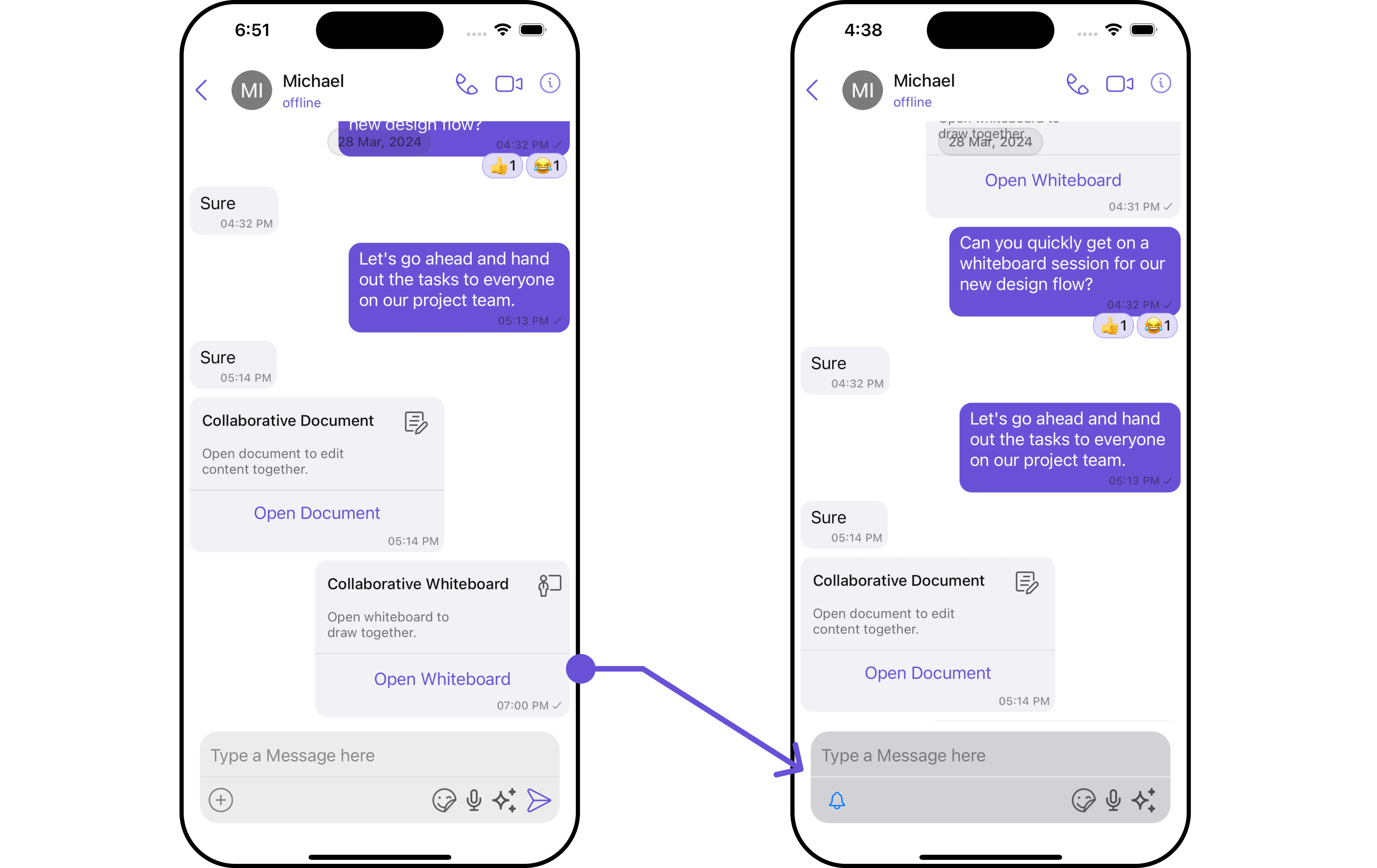 cometChatMessages. If a navigation controller is already in use, utilize the pushViewController function instead of directly presenting the view controller.FooterView
