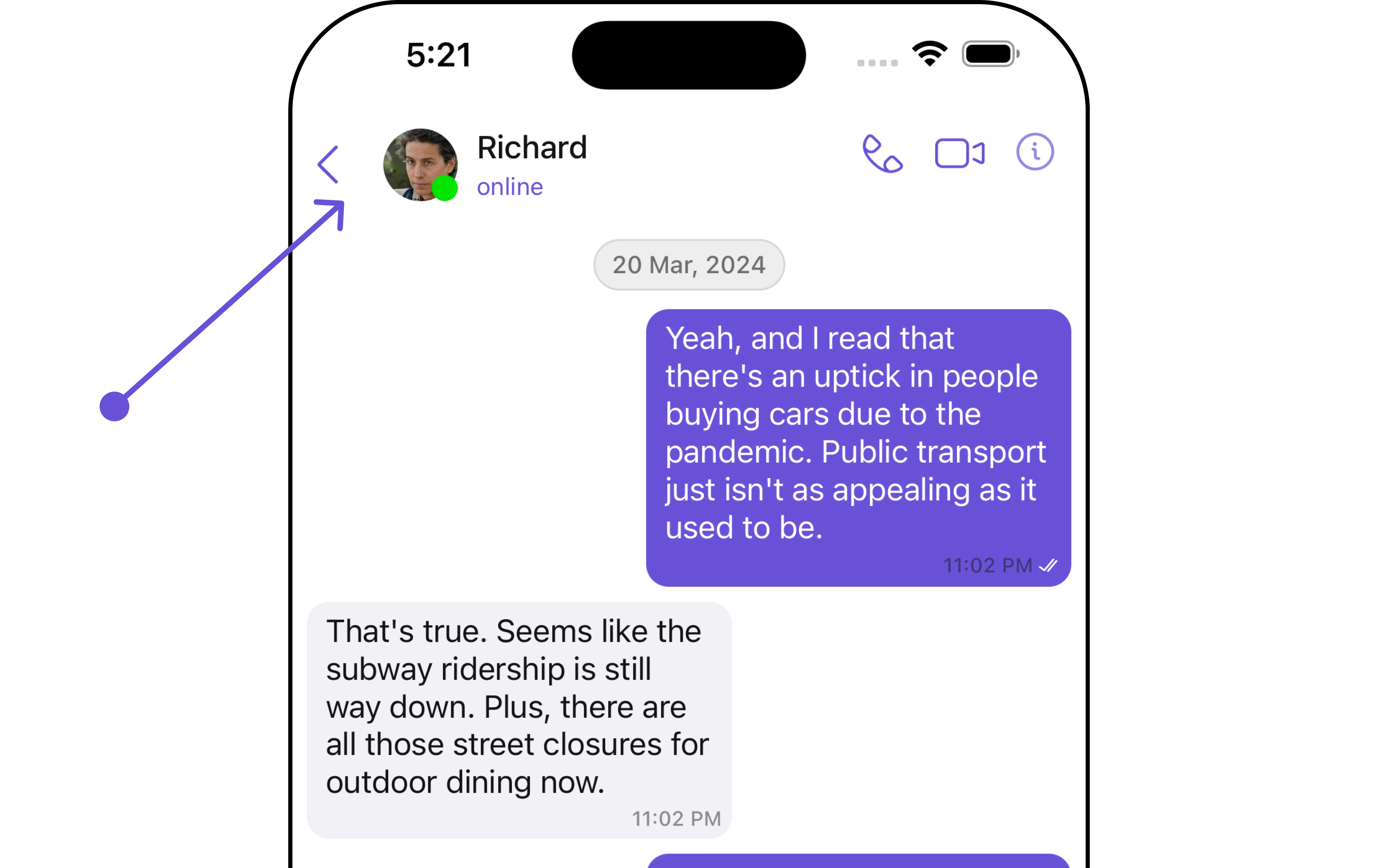 cometChatMessages. If a navigation controller is already in use, utilize the pushViewController function instead of directly presenting the view controller.SetBackIcon