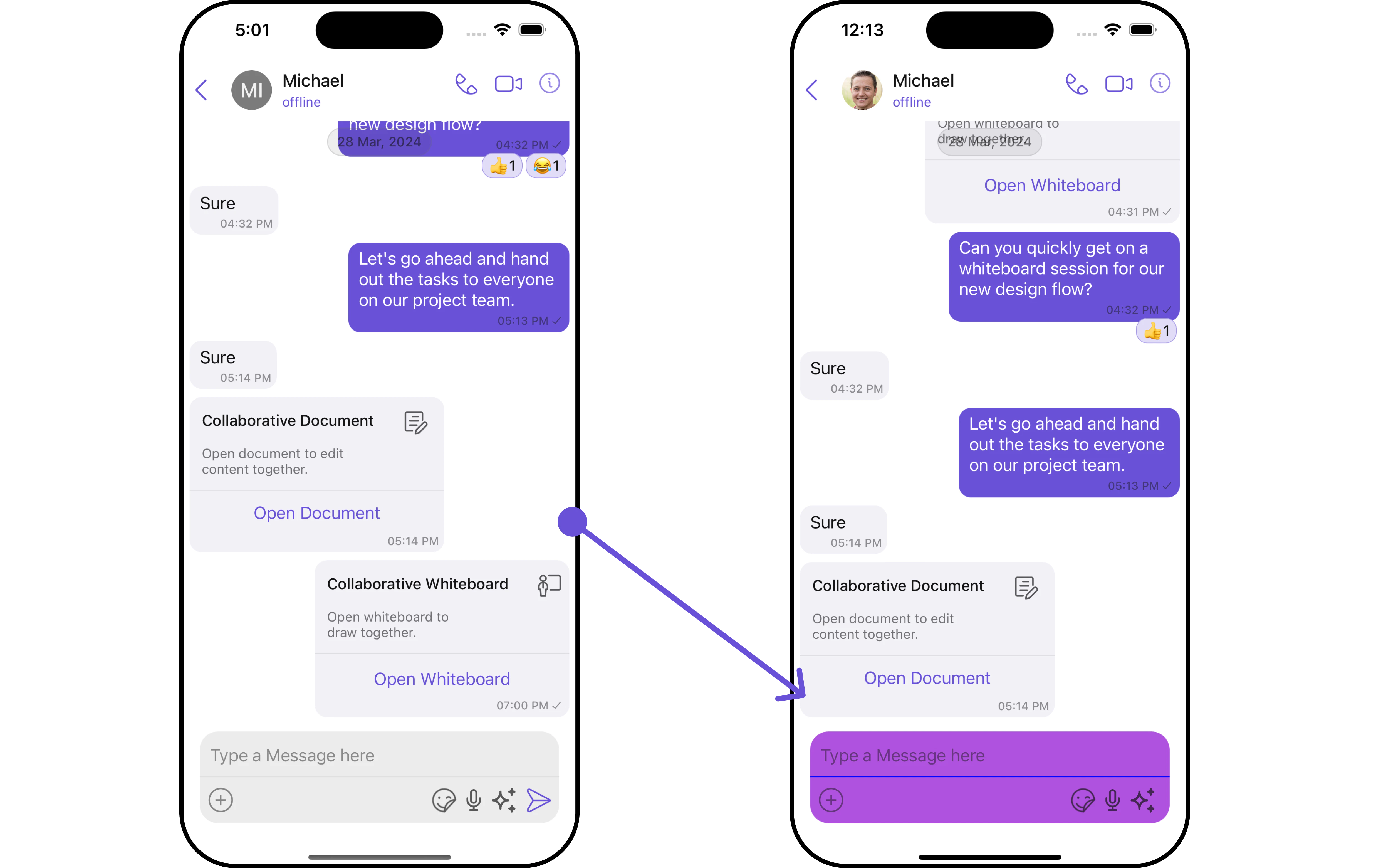 cometChatMessages. If a navigation controller is already in use, utilize the pushViewController function instead of directly presenting the view controller.MessageComposer