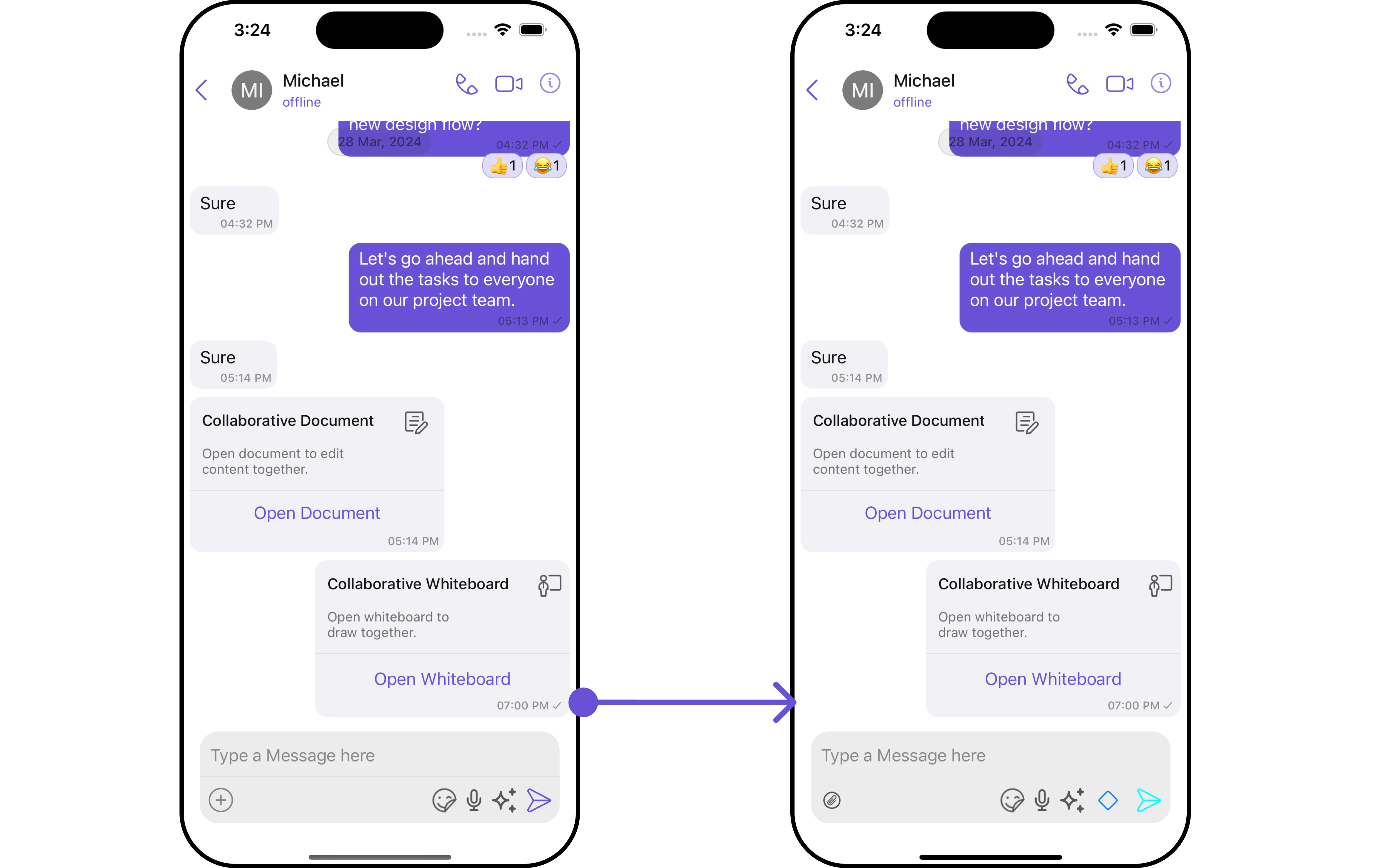 | Disable Typing | Used to toggle functionality for showing typing indicator and also enable/disable sending message delivery/read receipts | .disable(disableTyping: Bool) |
