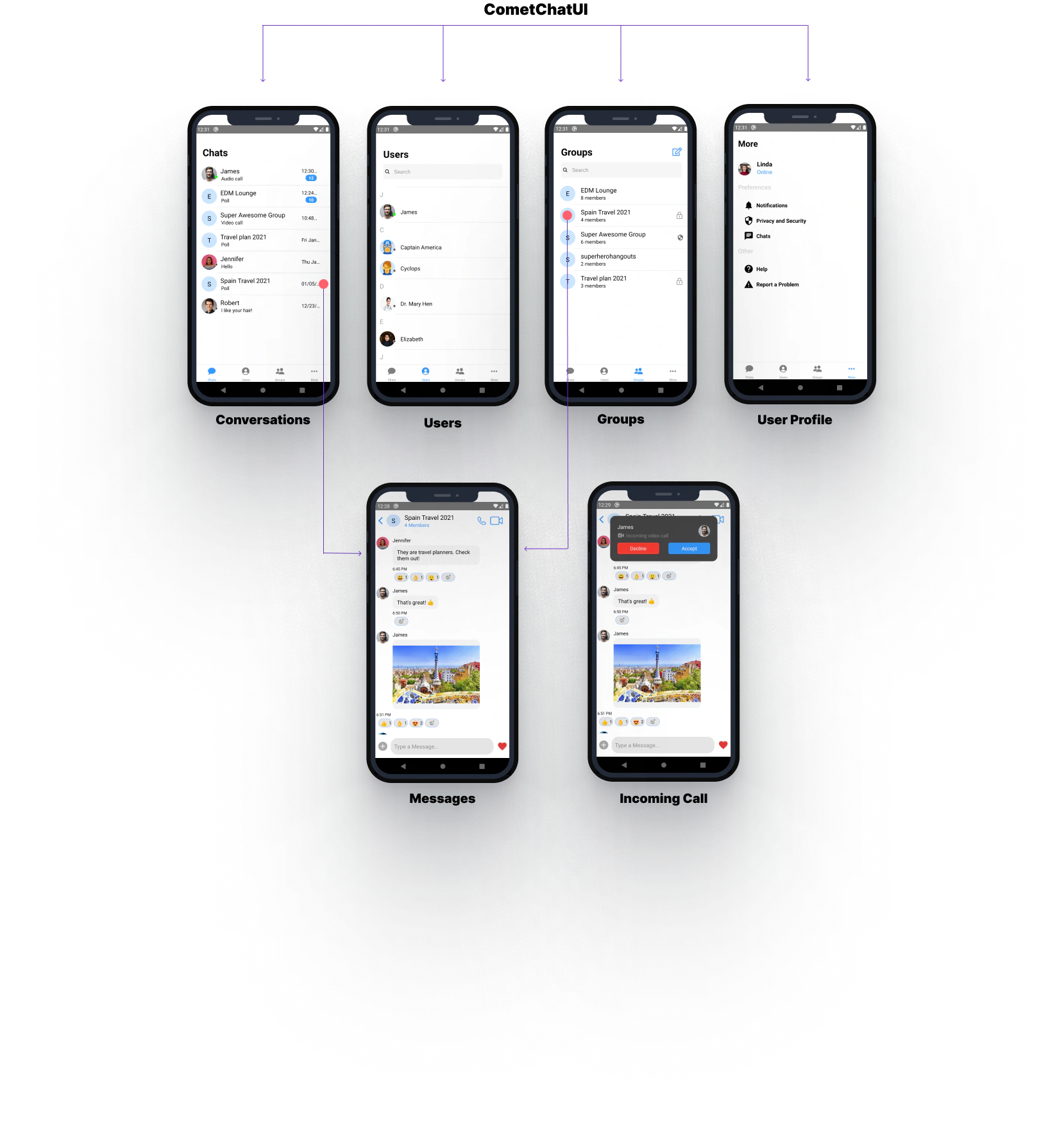 CometChatUI is an option to launch a fully functional chat application using the UI Kit. In CometChatUI all the UI Components are interlinked and work together to launch a fully functional chat on your website/application.