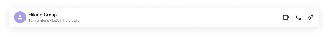 Displays group details in the header.| Type | CometChat.Group |