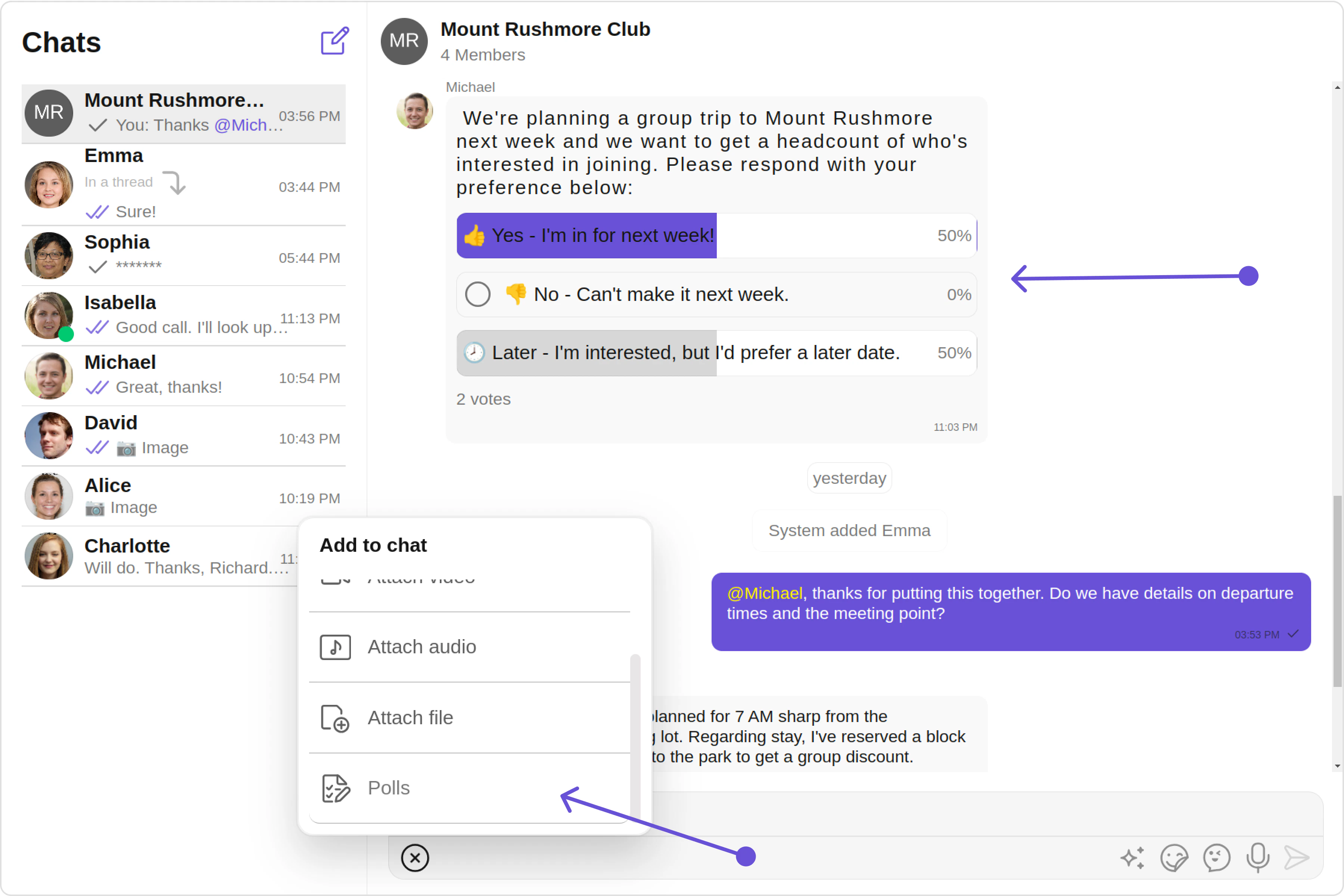 The Polls extension enhances group discussions by allowing users to create polls. Users can ask questions with a predefined list of answers, enabling a quick, organized way to gather group opinions. For a comprehensive understanding and guide on implementing and using the Polls Extension, refer to our specific guide on the Polls Extension. Once you have successfully activated the Polls Extension from your CometChat Dashboard, the feature will automatically be incorporated into the Action Sheet of the Message Composer component of UI Kits.