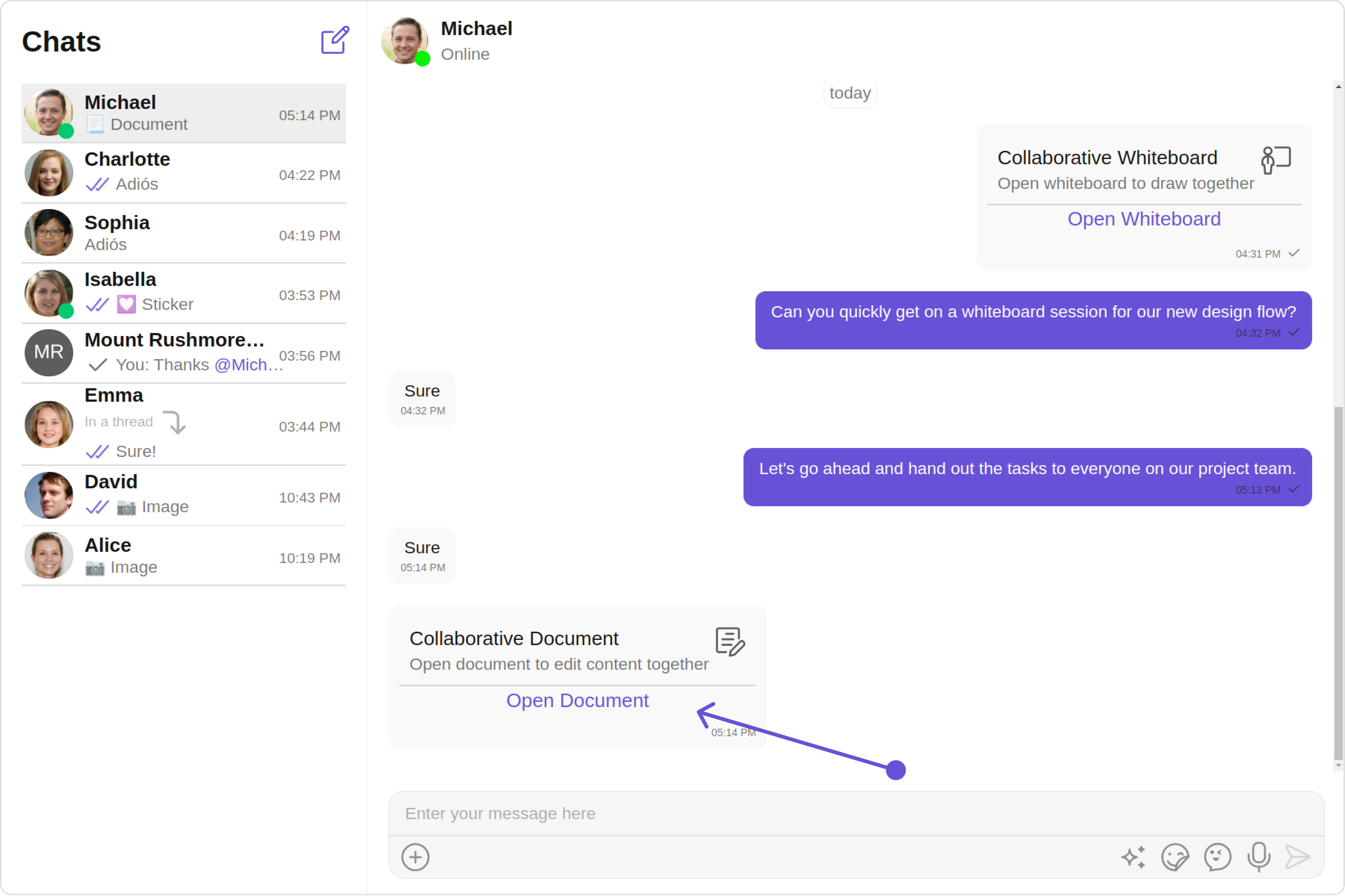 With the Collaborative Document extension, users can work together on a shared document. This feature is essential for remote teams where document collaboration is a recurring requirement. For a comprehensive understanding and guide on implementing and using the Collaborative Document Extension, refer to our specific guide on the Collaborative Document Extension. Once you have successfully activated the Collaborative Document Extension from your CometChat Dashboard, the feature will automatically be incorporated into the Action Sheet of the Message Composer component of UI Kits.