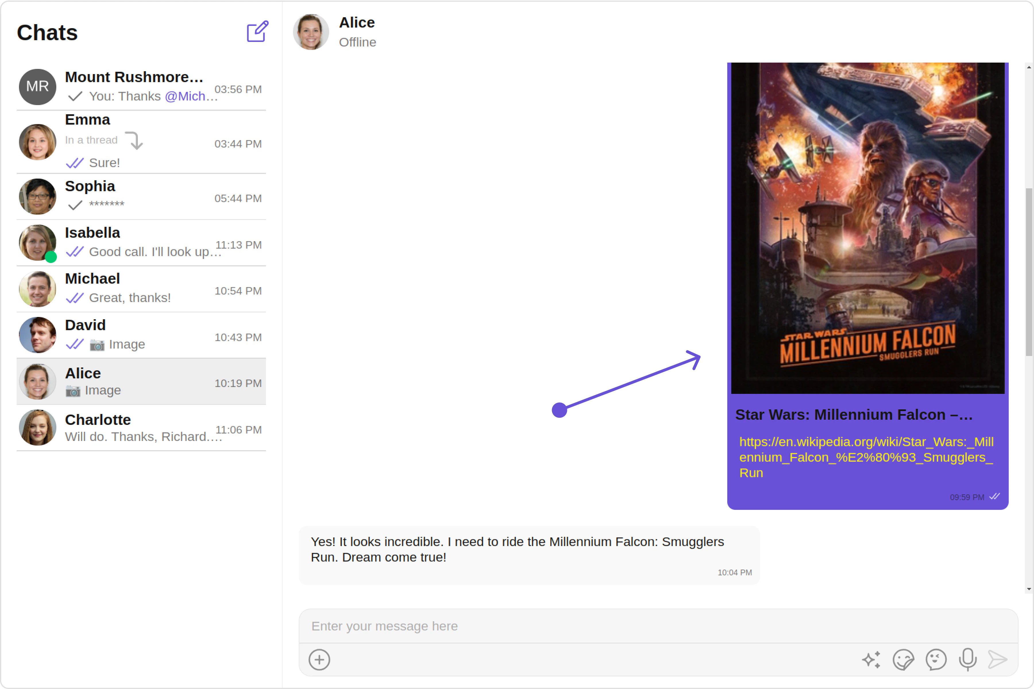 The Link Preview extension provides a summary of the URL shared in the chat. It includes the title, a description, and a thumbnail image from the web page. For a comprehensive understanding and guide on implementing and using the Link Preview Extension, refer to our specific guide on the Link Preview Extension. Once you have successfully activated the Link Preview Extension from your CometChat Dashboard, the feature will automatically be incorporated into the Message Bubble of MessageList Component component of UI Kits.