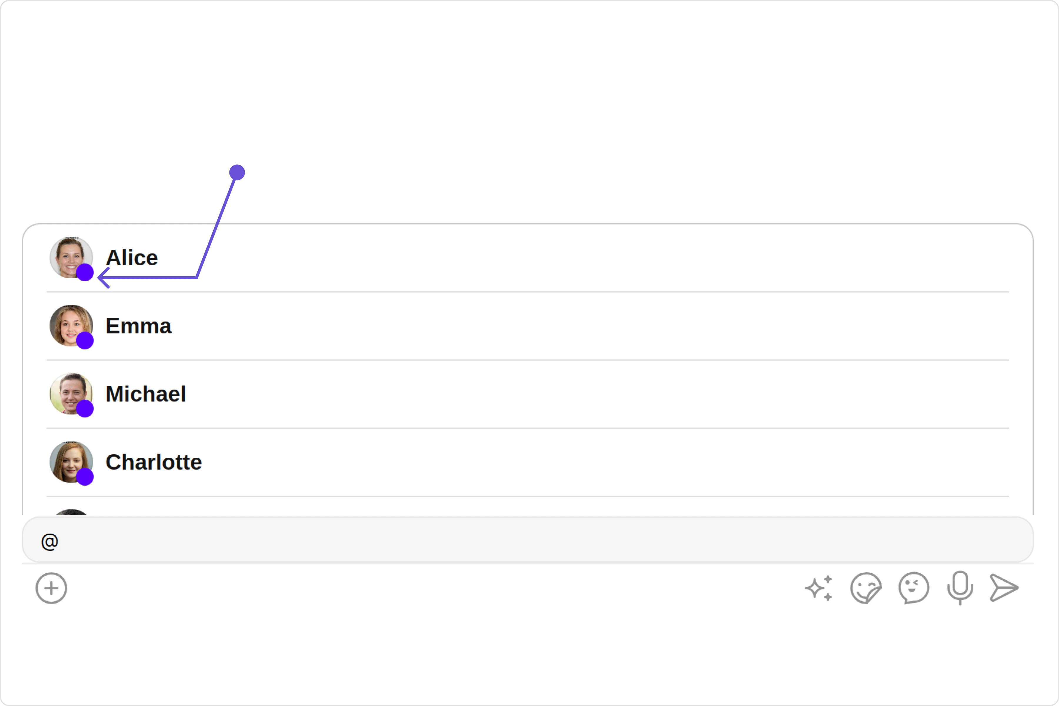 | disableUsersPresence | used to control visibility of status indicator shown if user is online | disableUsersPresence={true} |