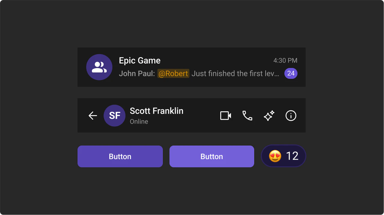 The Chat UI Kit comes with a carefully designed color palette to ensure a consistent and visually appealing user interface. It uses the Block, Element, Modifier (BEM) methodology, a standard naming convention for CSS classes. This approach allows for organized, scalable styling, and components can be easily customized by overwriting the applicable resources file in the Kit’s stylesheet.Color Palette